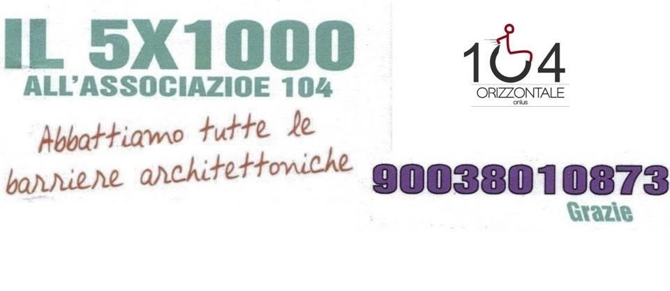 Continuate ad aiutarci donando il 5x1000 all'associazione 104 e noi potremo fare ancora di più.